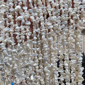ریسه مروارید پرورشی مدل شاخی سایز حدودی 10 در 7 میل با کیفیت و مرغوب طول ریسه حدود 37 سانت برای ساخت انواع زیورآلات