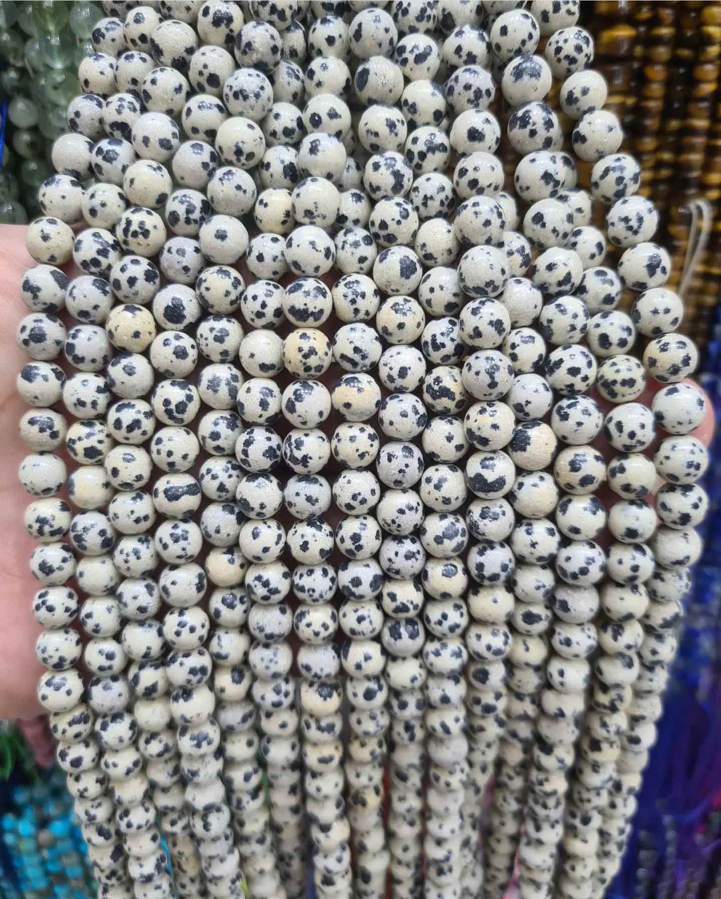 ریسه سنگ دالماتین بسیار با کیفیت و درجه یک محصولی سرشار از انرژی و زیبایی برای ساخت انواع زیور الات