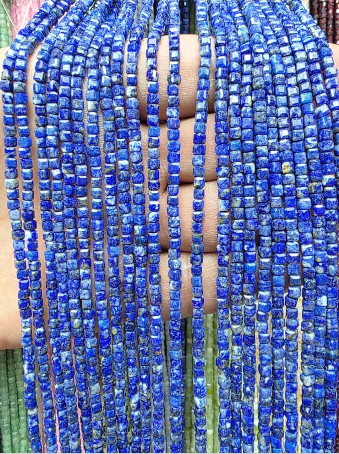 ریسه سنگ لاجورد مکعب سایز 3 میل طول ریسه حدود 38 سانت