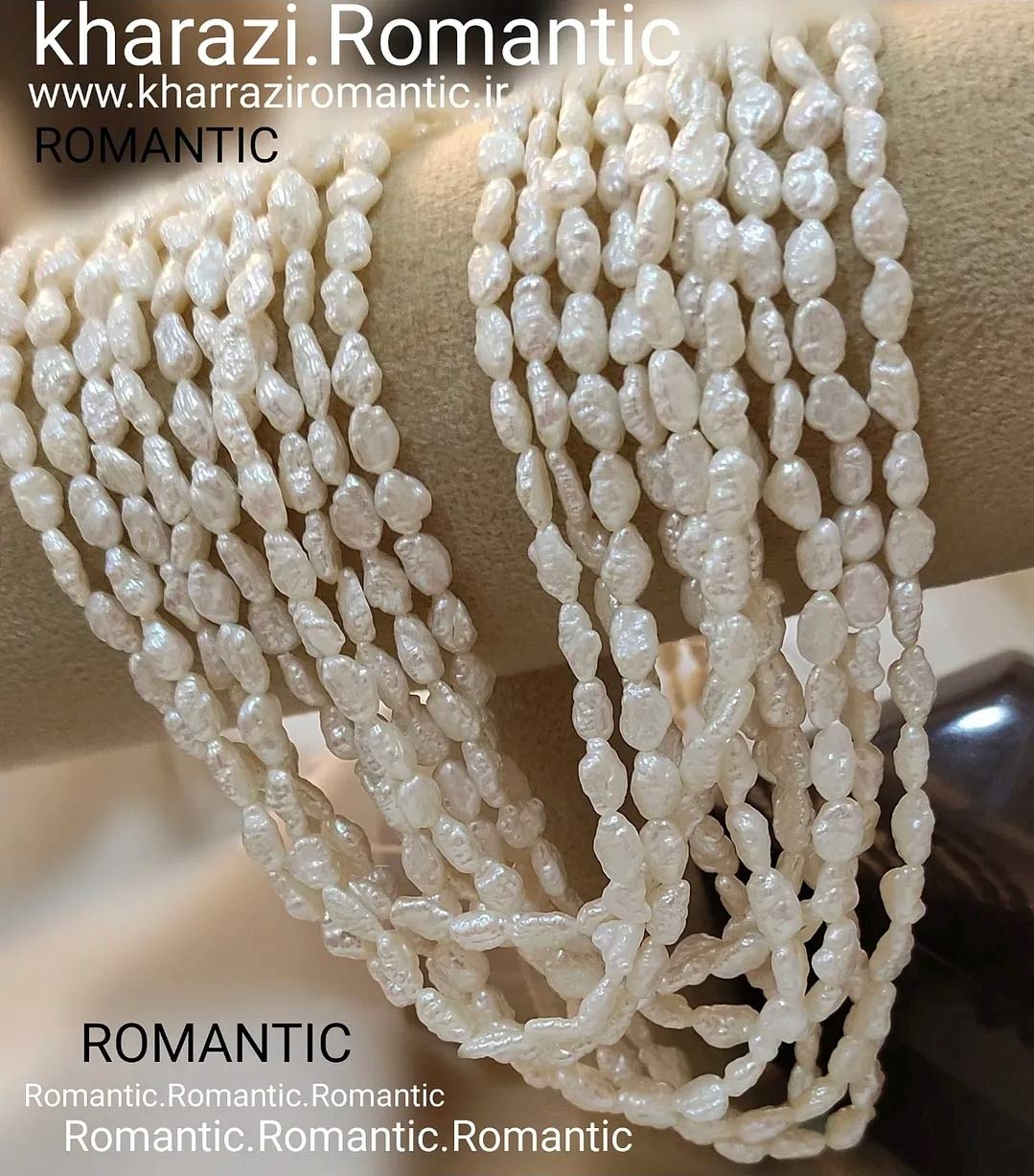 ریسه مروارید پرورشی مدل دفرمه برفکی بسیار با کیفیت و درجه یک گوهر دار و طبیعی
