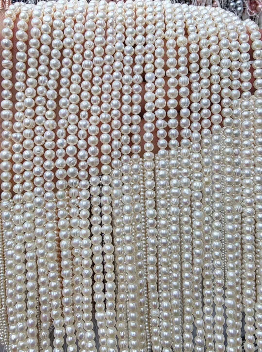 مروارید پرورشی سایز 6 میل بسیار با کیفیت طبیعی و کم یاب طول ریسه حدود 40 سانت بسیار گوهردار و کم خط